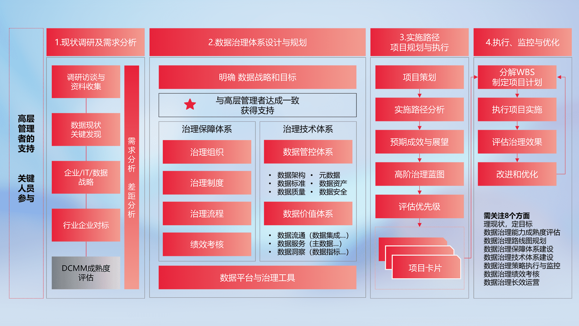 制定并执行统一的数据标准,,规范数据定义和格式,,,,消除冗余和不一致性,,,,实现跨部门和跨系统的数据一致性,,,为企业提供标准化的数据基础。。。